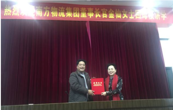 官金仙董事长还通过多媒体向师生介绍她现在的物流企业。她二十几年如一日,将一个小小的货运部发展成为现在拥有十二大物流基地、业务网点遍及全国170多个大中城市的综合型现代化物流企业——“广东星空体育官网登录入口-星空体育(中国)有限公司”。官金仙董事长领导的星空体育官网登录入口-星空体育(中国)在推动和引领中国民营物流企业由传统经营模式向现代经营模式转变和改革的过程中做出了积极的贡献,从担当起“振兴家族”意识——“企业家责任”意识,实现了人生道路上的重大飞跃,讲到这里,全场爆发了热烈的掌声。