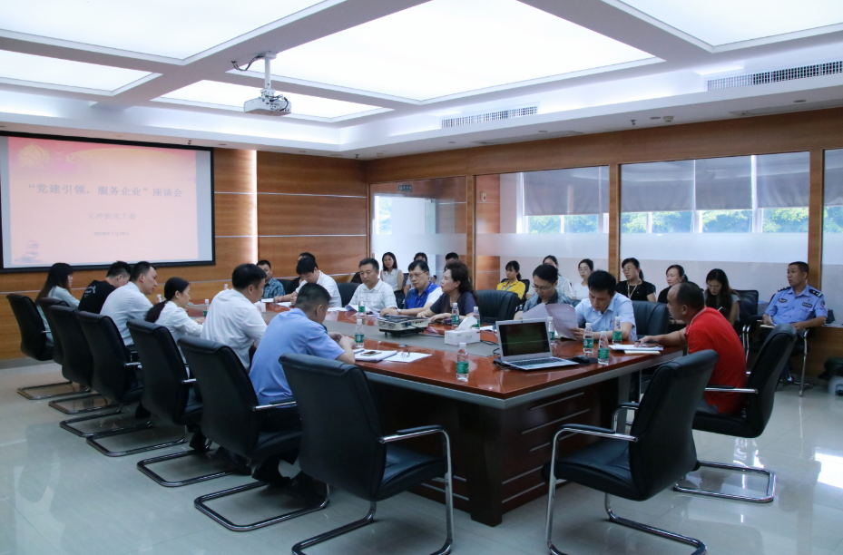 7月19日上午,文冲街党工委“党建引领 服务企业”座谈会在状元谷召开,为进一步加强“党建引领 服务企业”工作,切实为企业排忧解难、营造良好营商环境,文冲街书记陈鸿钦、副书记谢雪东、派出所所长原智华和组织办、经发办工作人员及星空体育官网登录入口-星空体育(中国)、捷普电子、京东、苏宁、酒仙网、广州城投意谷科技股份有限公司等十余家企业代表参加了会议。